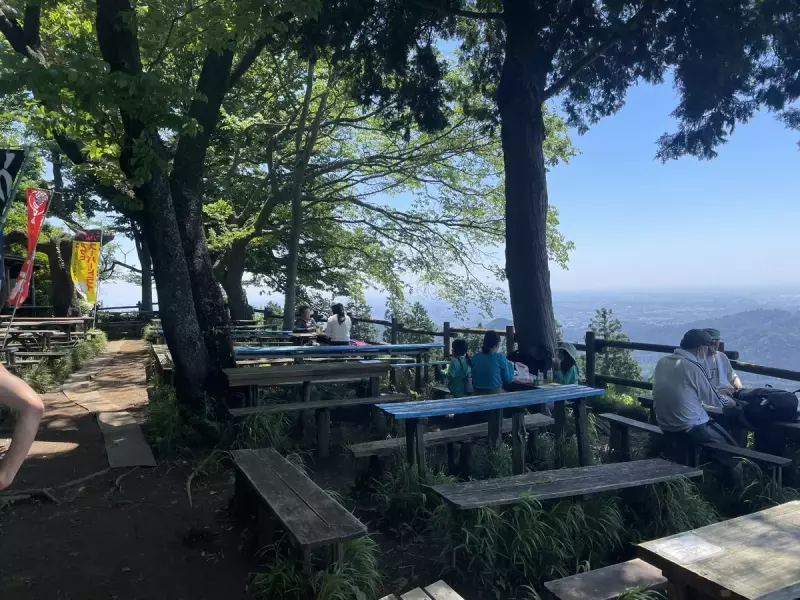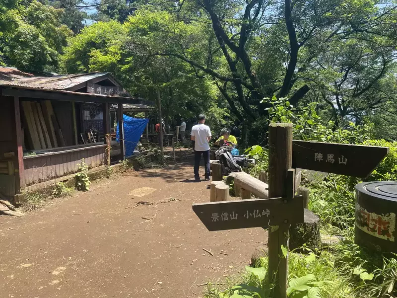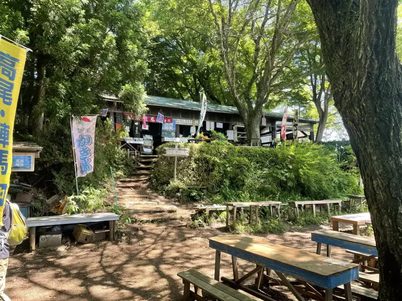 小仏峠を過ぎ景信山まで約1時間。景信山はちょうど中間地点にあたります。景信茶屋は城山茶屋と比較しても、かなり広々としており、また風通しが良く涼しく過ごすことができます。