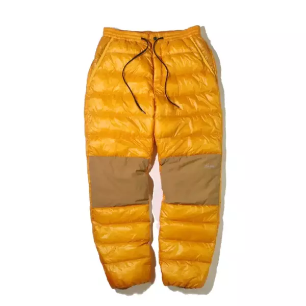 厳しいダウンの検査を行うマウンテンイクイップメントのパウダーパンツは重量わずか200g 程度で非常に暖かい特徴的な作りに仕上がっています。