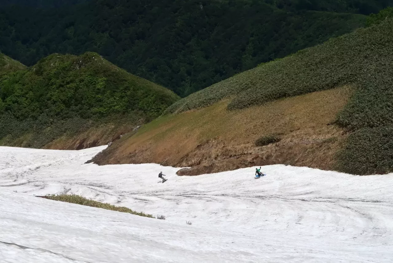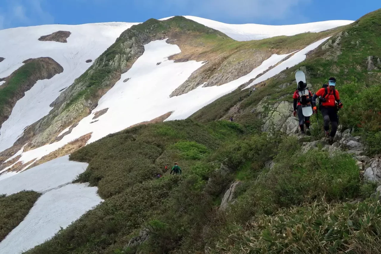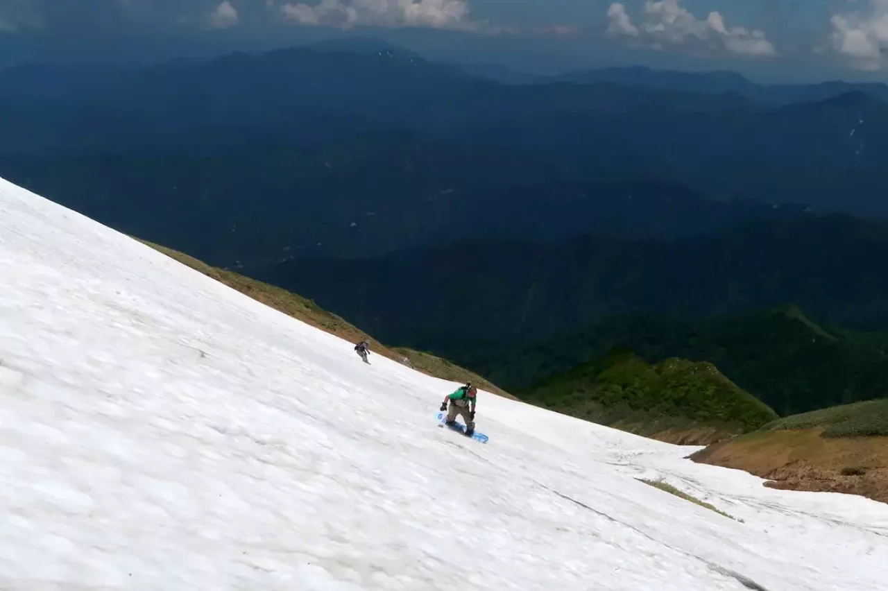 6月21日のこの日、まだまだ滑り足りない馬鹿ボーダーの我々は雪を求めて越後駒ケ岳へ。枝折峠の滝雲、眩しい新緑と雪渓滑走と一日で何度も美味しい山旅の幸せを。