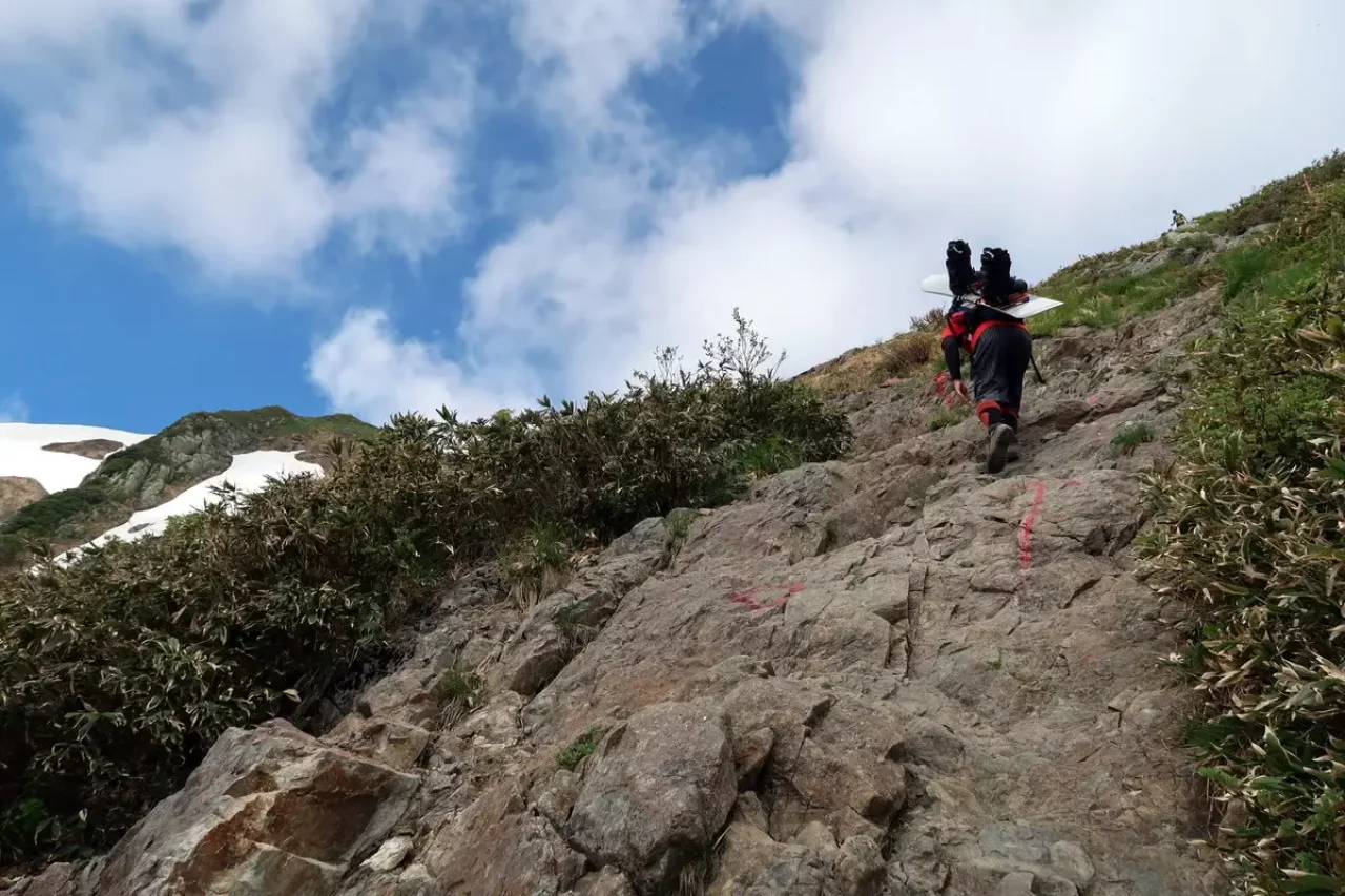 6:51 最初の岩場を超えると越後駒ケ岳の山容が、素晴らしい山だけどこれ担いであそこまで行くのかー、、、、と思わされました。