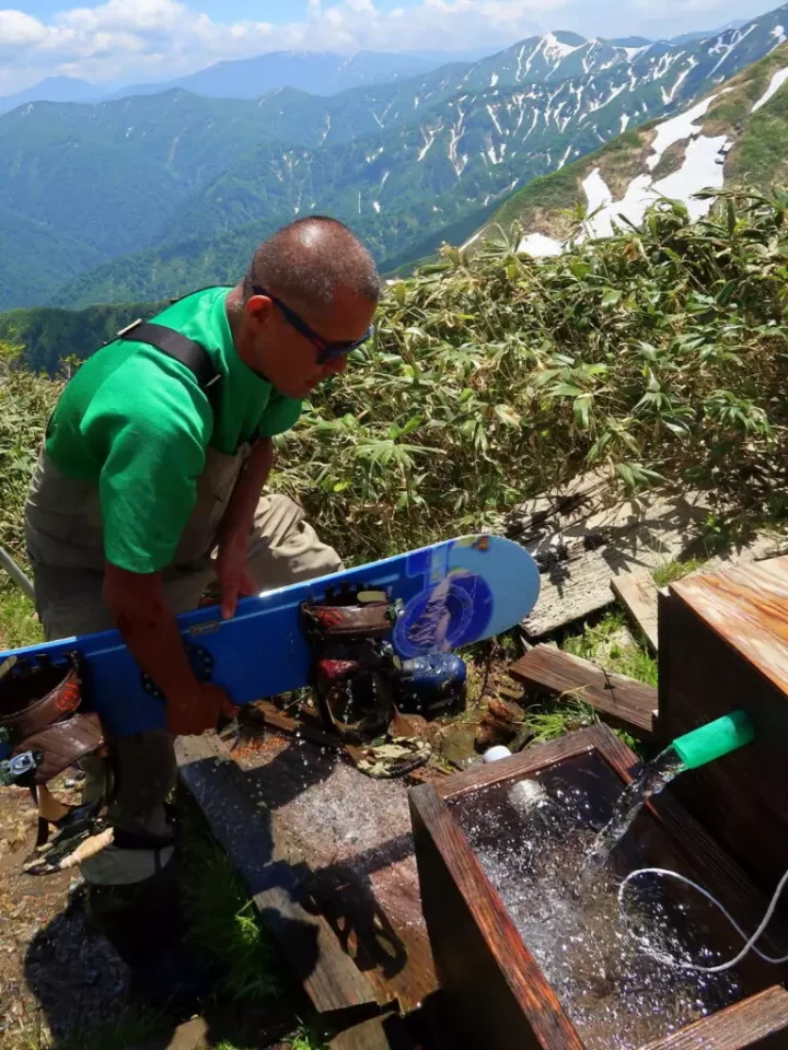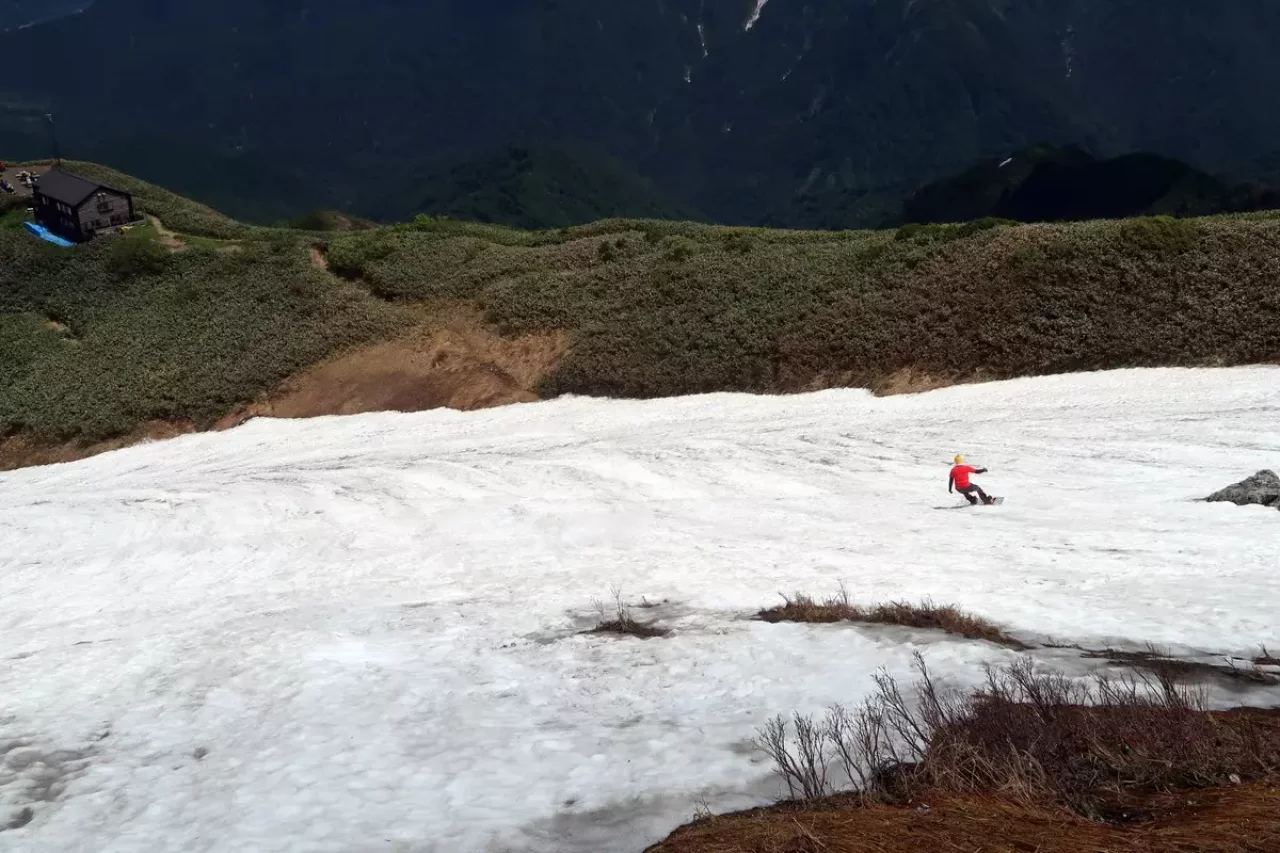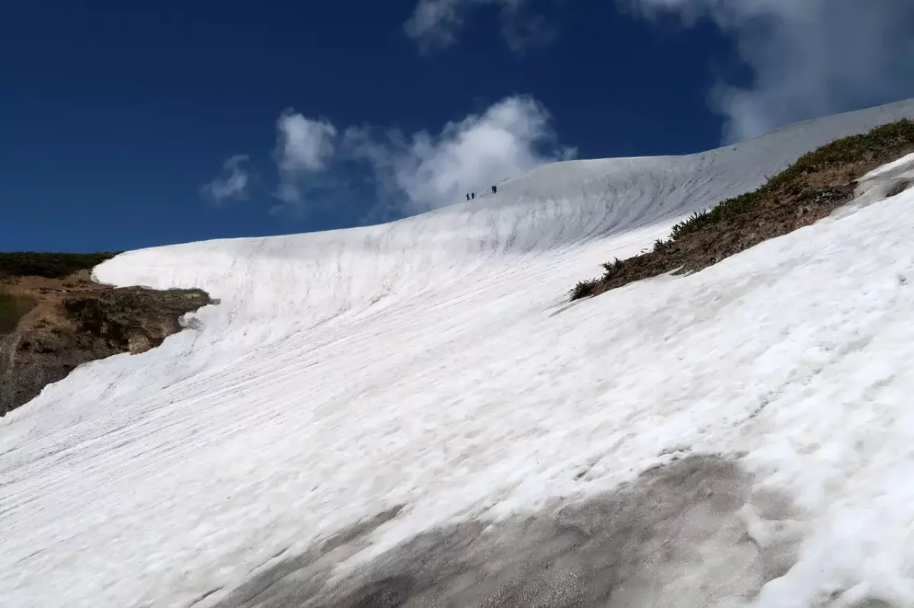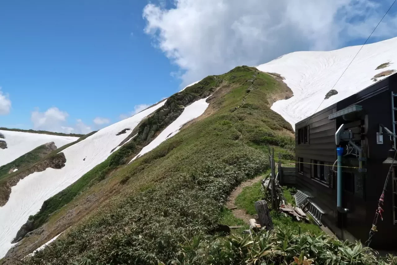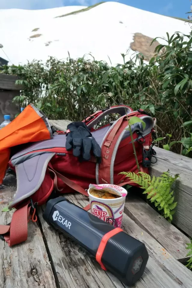 雪渓を下る涼風、絶景とともに頂く熱々カップ麺、かなり幸せな時間です。