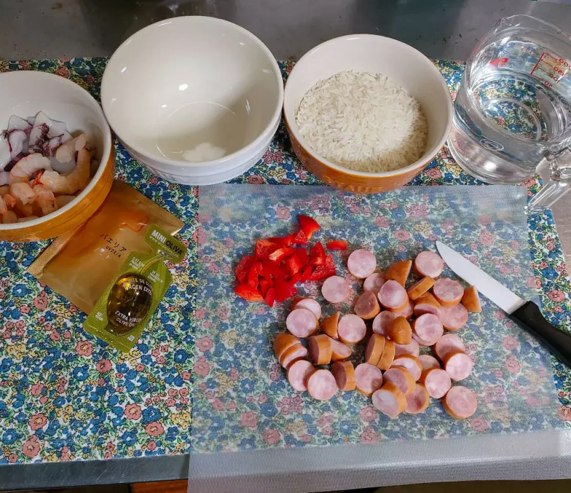簡単メスティンレシピ「シーフードミックスで作る本格パエリア」の材料