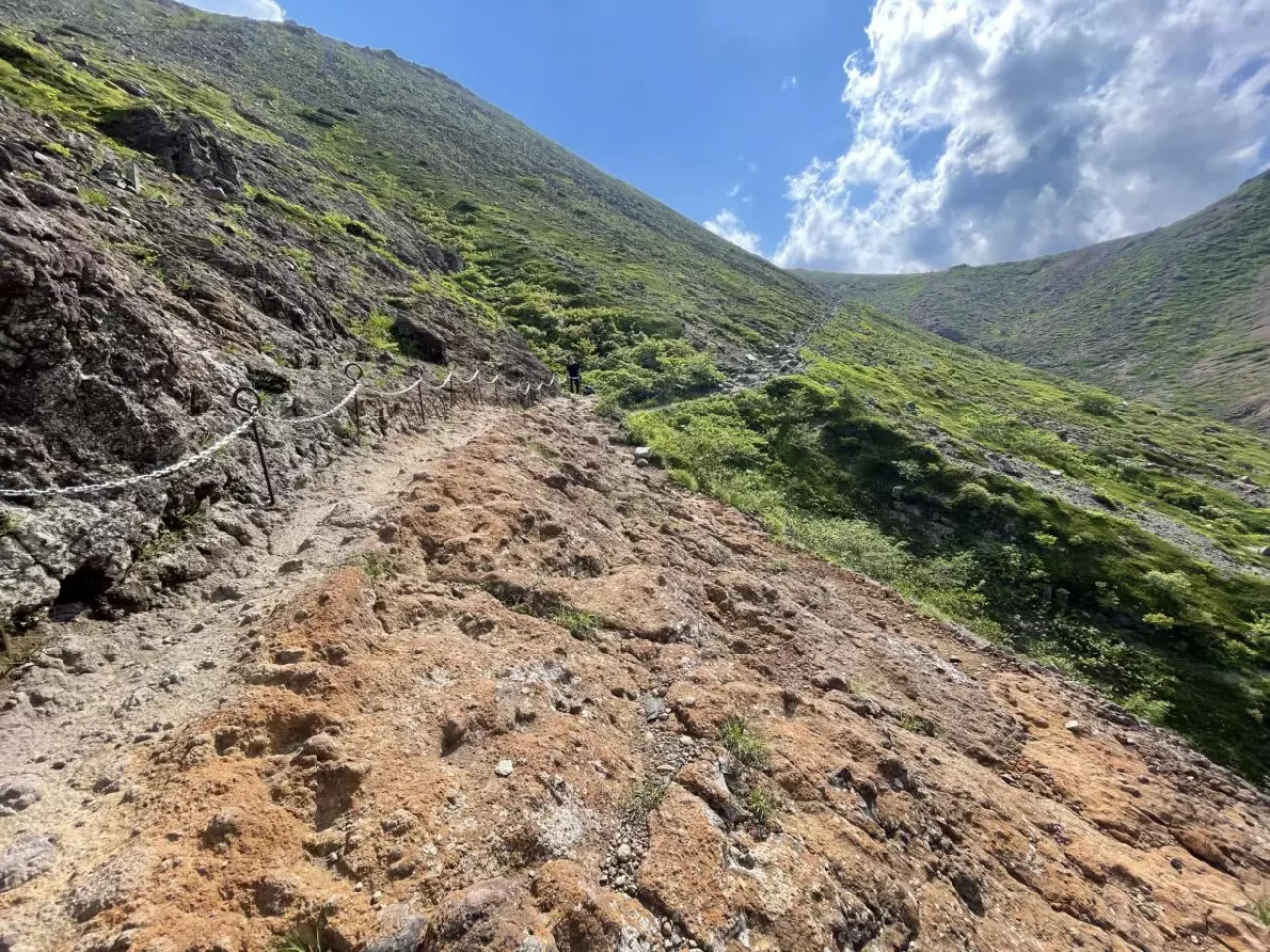 今回紹介するコースは数あるルートの中でも比較的短く初心者の方でも三斗小屋温泉・煙草屋旅館までアクセスしやすいルートをご紹介いたします。ガレ場の下りには注意が必要ですが、樹林帯まで下れば沢がいくつも流れ、荒涼とした景色から木々の立ち込める山深い景色までとバリエーション豊かに楽しめるおすすめのコースとなっています。また今回のコース上には2っの避難小屋もあるので、初めてで不安という方はまずはじめに今回のコースを計画してみてはいかがでしょうか。