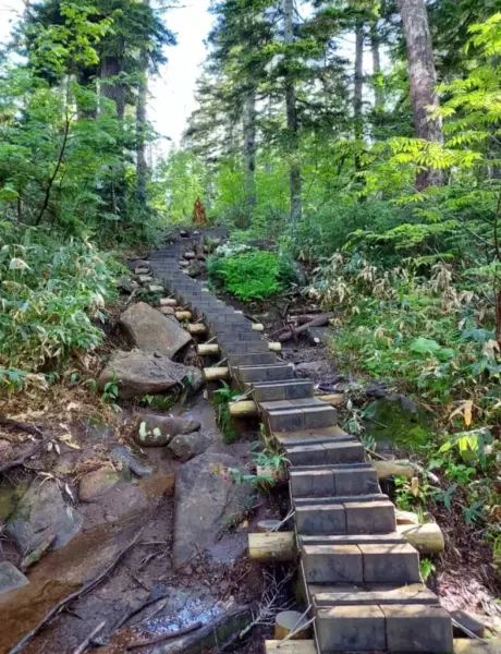 富士見平までの登山道は良く整備されており、木道が続きます。ただ、この日は前日の大雨でぬかるみが多く苦労しました。