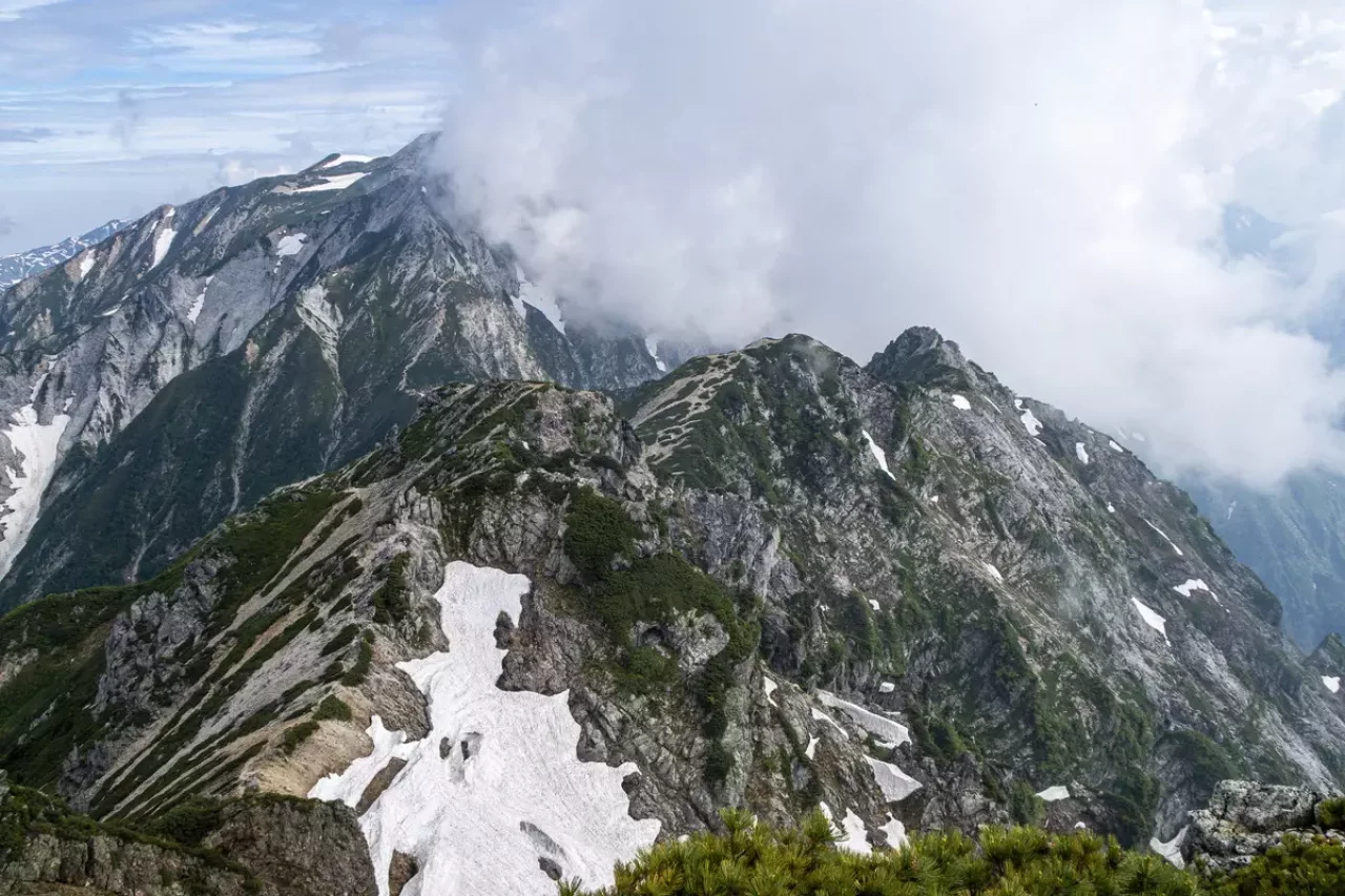 唐松岳は目の前に不帰嶮を見ることができます。不帰嶮は北アルプスの三大キレットと呼ばれる国内屈指の難易度を誇るエリアです。
