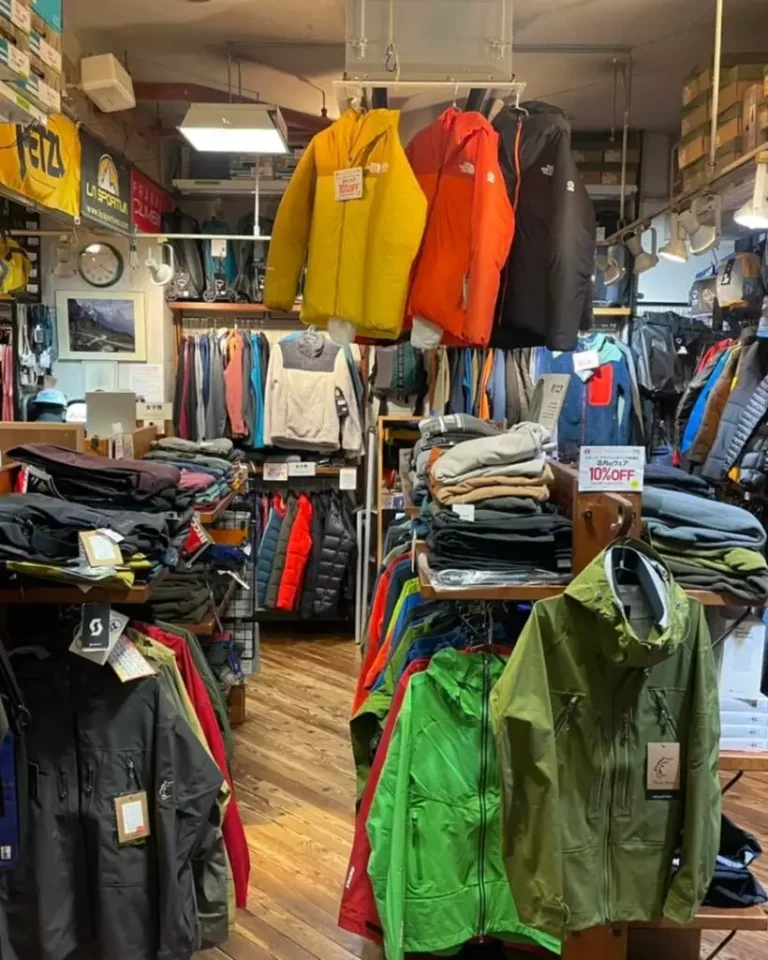 カモシカスポーツは高田馬場に本店があります。ワンフロアにウェアからギアまでを取り揃え、季節に応じた最適な装備を手に取ることができる登山専門店です。