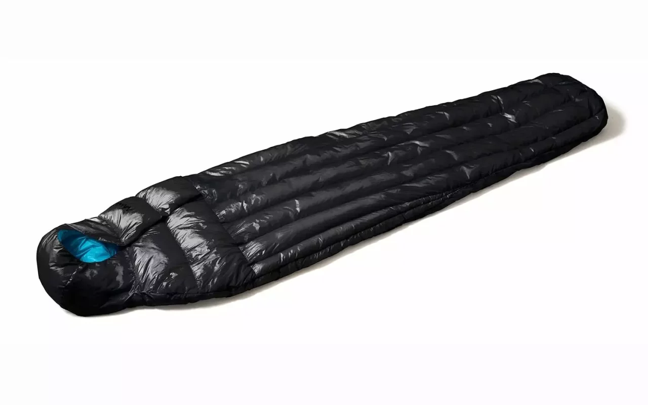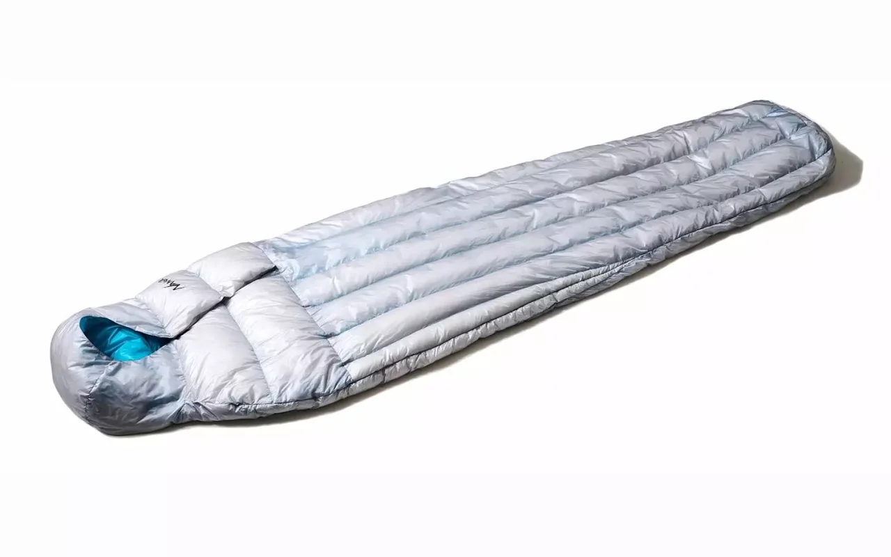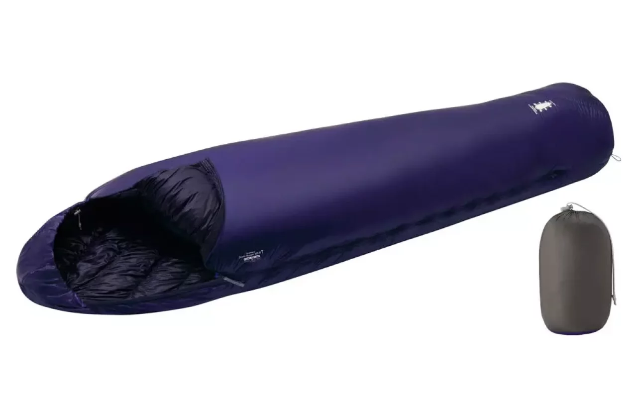 すべてにボックスキルトを採用し、非常に厳しい保温力テストでフィルパワーを提示するウエスタンマウンテニアリングの軽量に優れたダウンシュラフです。ダウン入りの襟巻がついており、体幹の熱を外に逃がさないように作られています。