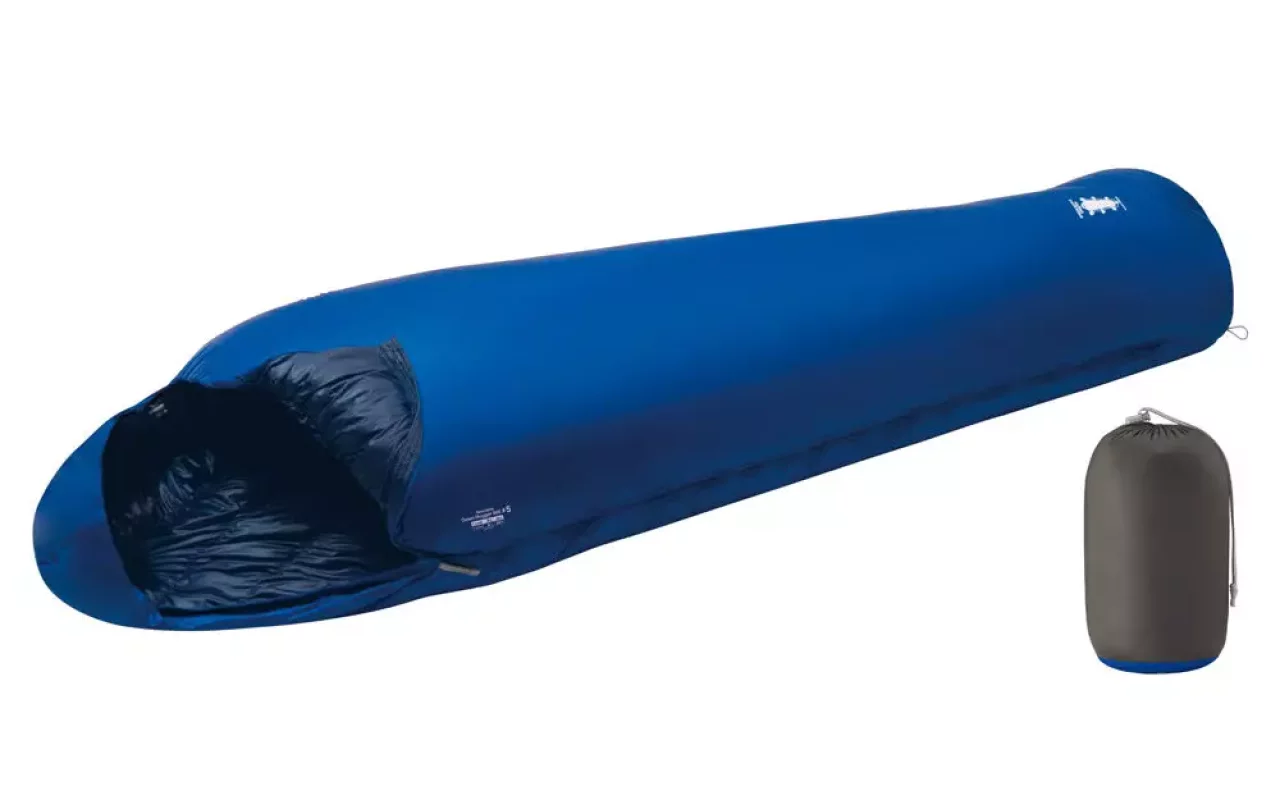 高い引き裂き強度と耐久性を持つコーデュラナイロンで仕上げたシュラフです。フードとジッパーを取り除きミニマムでシンプルな構造にしあげています。寒さに敏感な足元には多めの段を充填し保温性を向上させるなど細やかな作りも魅力です。シェルには撥水加工が施され、結露などの濡れにも安心です。