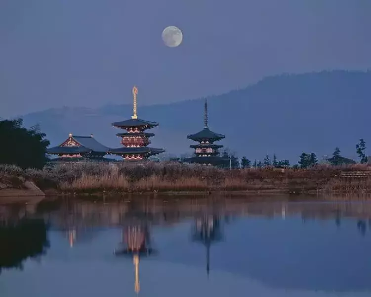 本展では、入江がモノクロ写真からカラー写真に転向した1964年以降の作品から、鮮やかな夕景に法隆寺塔のシルエットが映える「斑鳩の里落陽(法隆寺塔)」(1980年頃)や霧の立ち込める田園風景に二上山が浮かび上がる「二上山への道」(1968年頃)など、繊細な色調で描き出された奈良大和路の作品を展示します。カラーに転換した当初、色彩の表現に戸惑ったという入江でしたが、抑制の効いたカラー作品は「入江調」と称され、今や入江の代表作となっています。古代人の心までをも彷彿とさせる味わい深い作品は、見る者の胸に眠る歴史への憧憬や故郷への想いを呼び覚ますことでしょう。余情あふれる色彩で表現された入江調の世界を心ゆくまでご堪能ください。