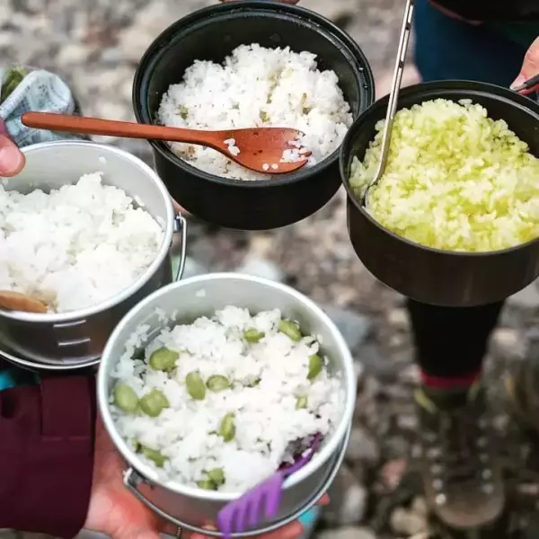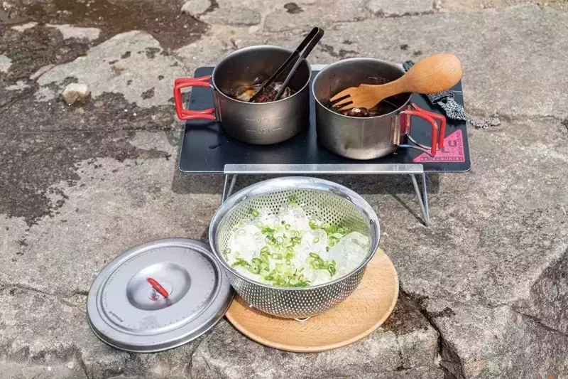 カップはチタン製のみで、1〜3人用の調理ができるクッカーは3種類の金属素材から選ぶことができます。