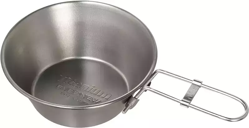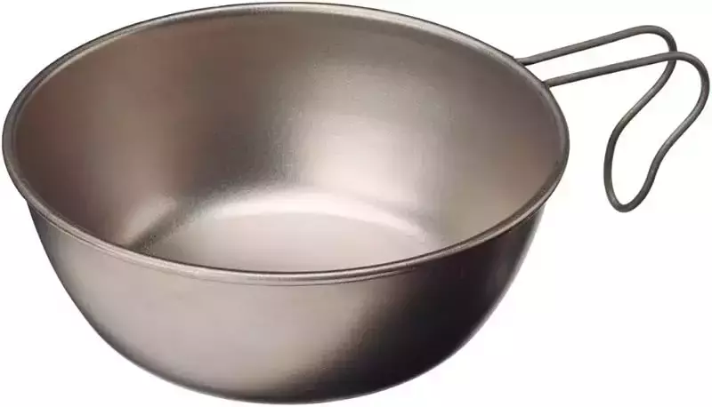 チタン製のシェラカップで680ml の大容量タイプです。ラーメンどんぶりのようなサイズでお皿としても使用できるし、クッカーとしても使える汎用性の高さが魅力のサイズです。