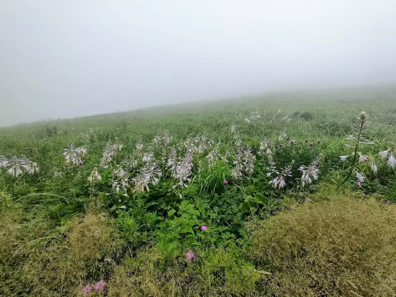 随分登ってきてやっと展望のいい所に出たのに、この通り辺りはガスに包まれています。