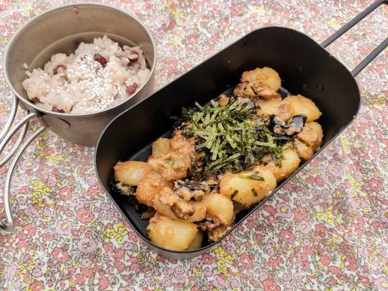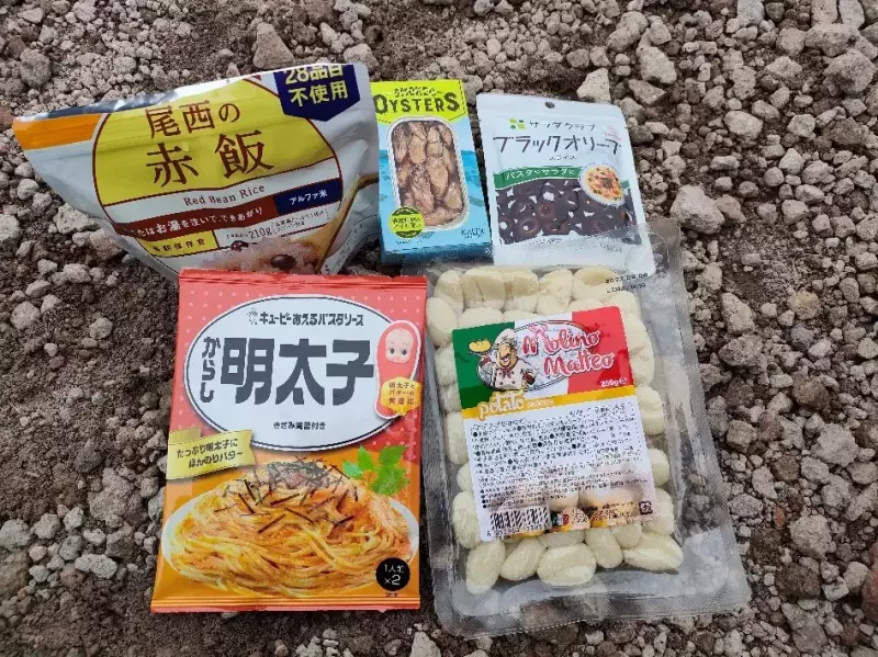 【カキとオリーブの明太子ニョッキ】とアルファ米の【赤飯】