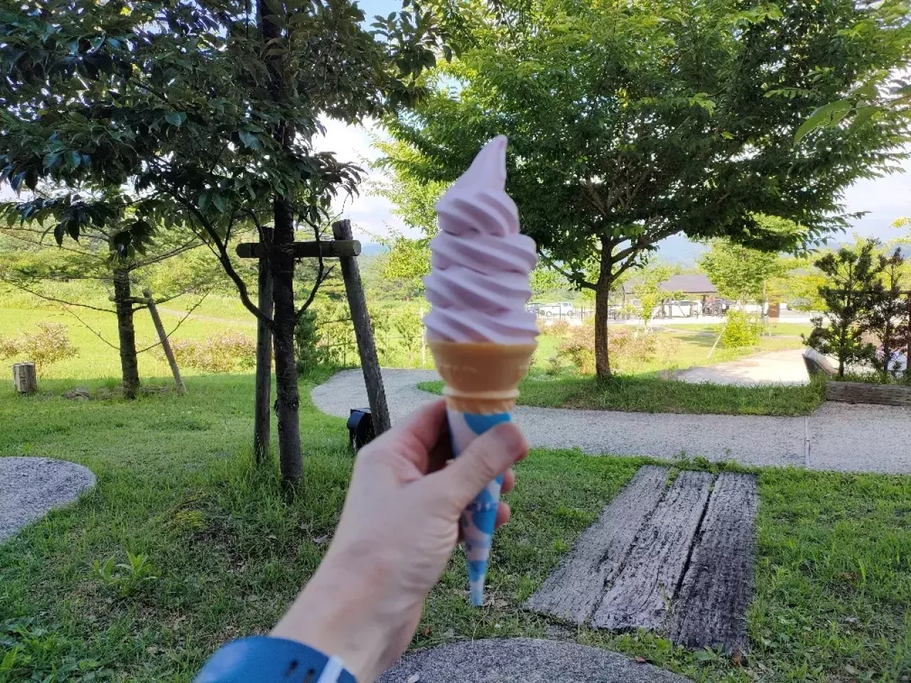 写真がピンボケですが、このほんのりピンク色の【ワインソフトクリーム】かわいいです。