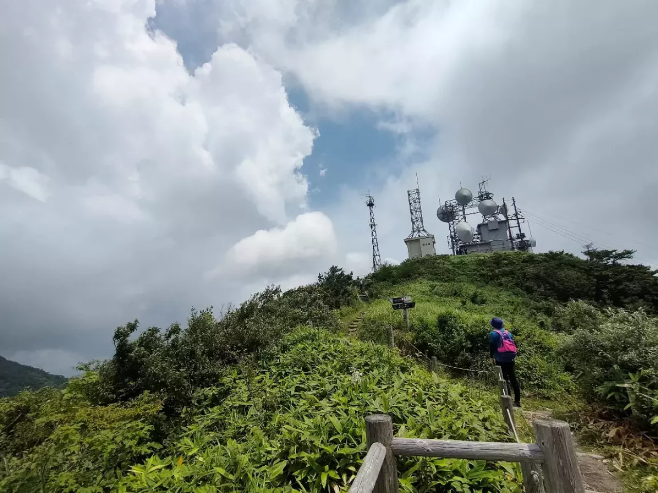 10:45女三瓶山到着。電波塔のある山頂が女三瓶山(957m)です。手前に展望台があります。