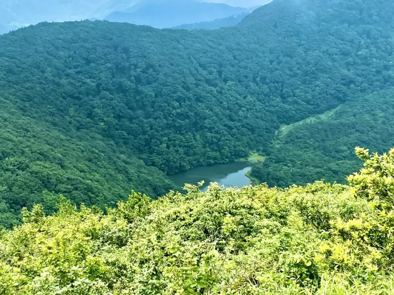 登ったらまた下りる。結構きつい道のりに、今日の目的【ハート探し】の事をすっかり忘れてしまいそうになっていましたが、ふと室の内池を見下ろせる箇所に来ると、
