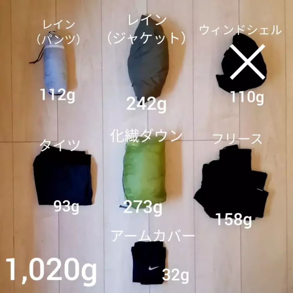 - ウィンドシェルは持っていかず、レイン(ジャケット)で代用