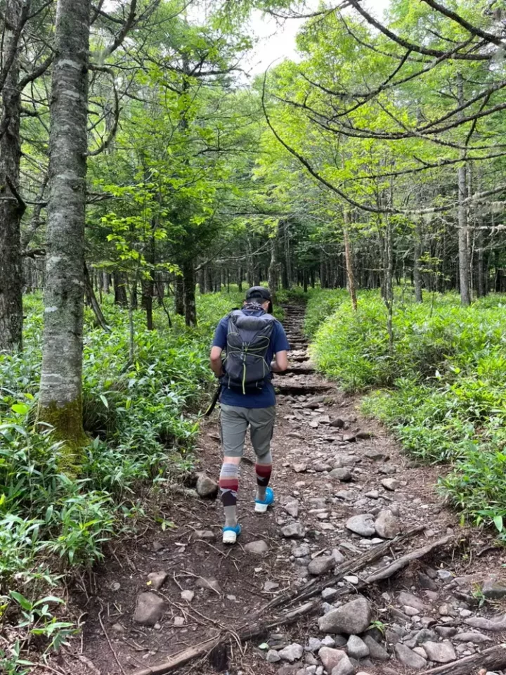 そんな中、mont-bellのアルパインザック(50か60Lくらい)を背負ったスラッとした格好いいソロの女性に一瞬にして追い抜かれた。一切滑ることもない安定感抜群の歩き方をしてはりました。