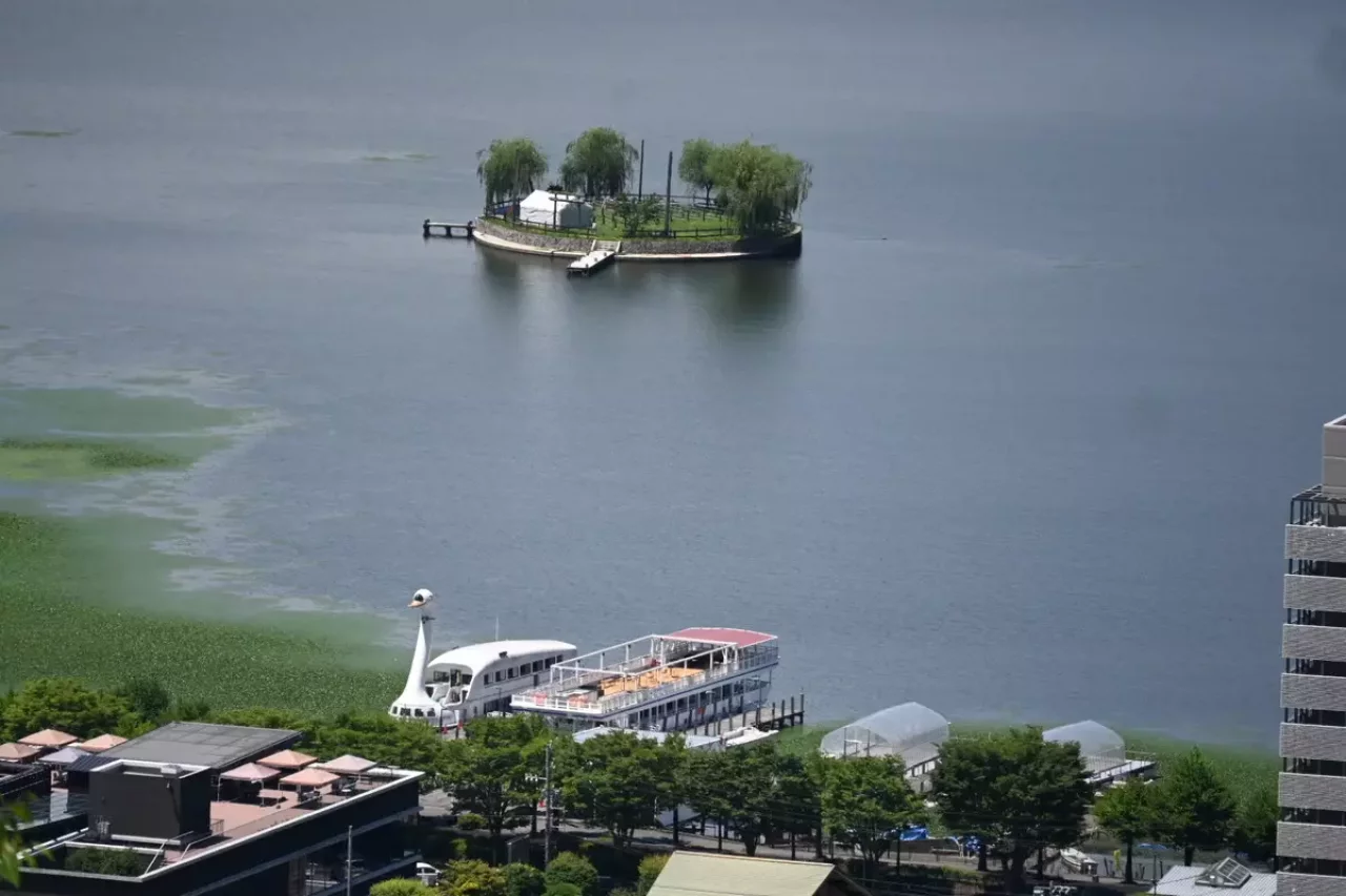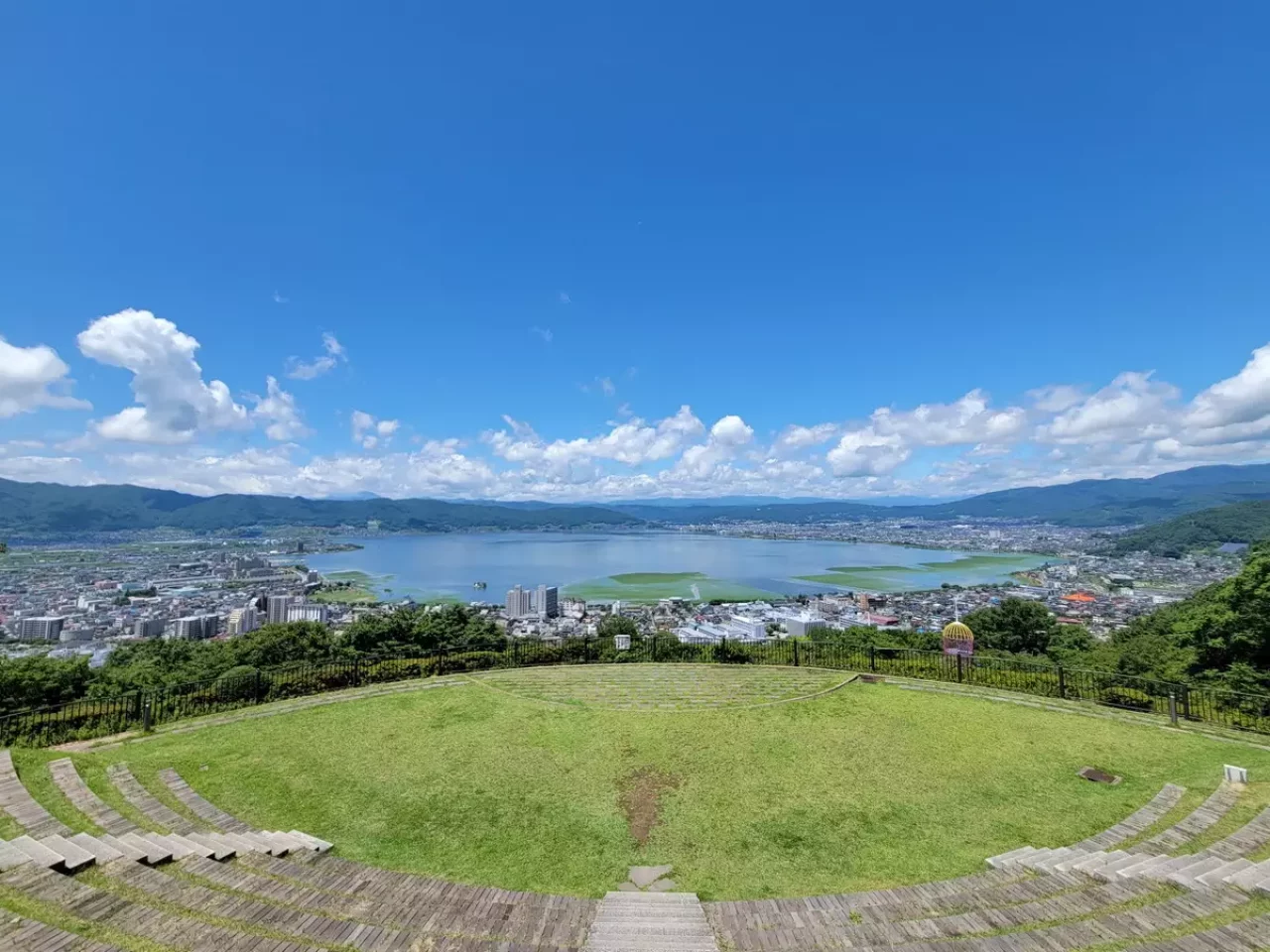 諏訪湖から少し登った場所にある公園。諏訪湖、街並みが一望できる素敵な場所。