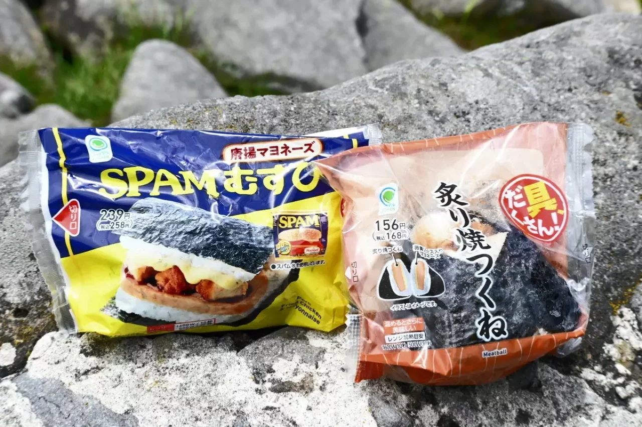 コンビニで買った高級スパム&唐揚おにぎりは汗をかいた体に塩分が染みる。