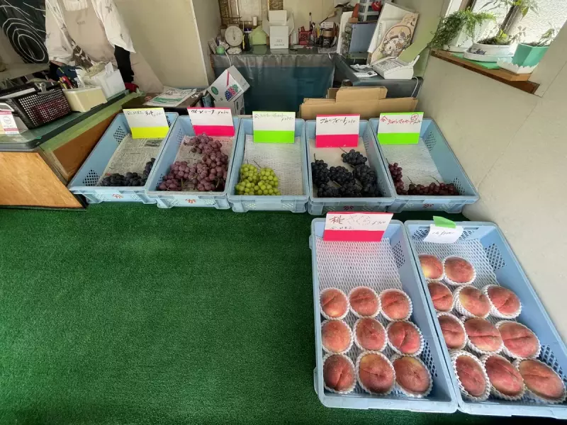 ご夫婦で切り盛りをしているブドウの直売所です。100g 単位でブドウを販売しており、シャインマスカット以外にも巨峰など香り高い品質の良いブドウを購入することができます。