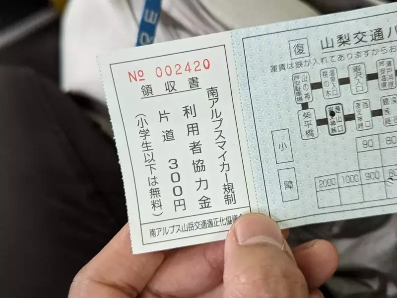 乗合タクシーは芦安駐車場から広河原直通で1,200円+協力金300円で利用できます。