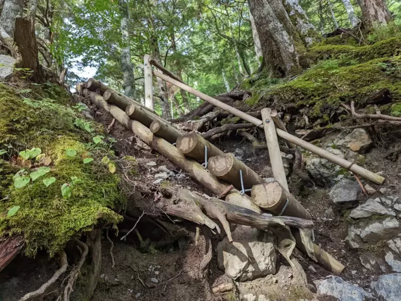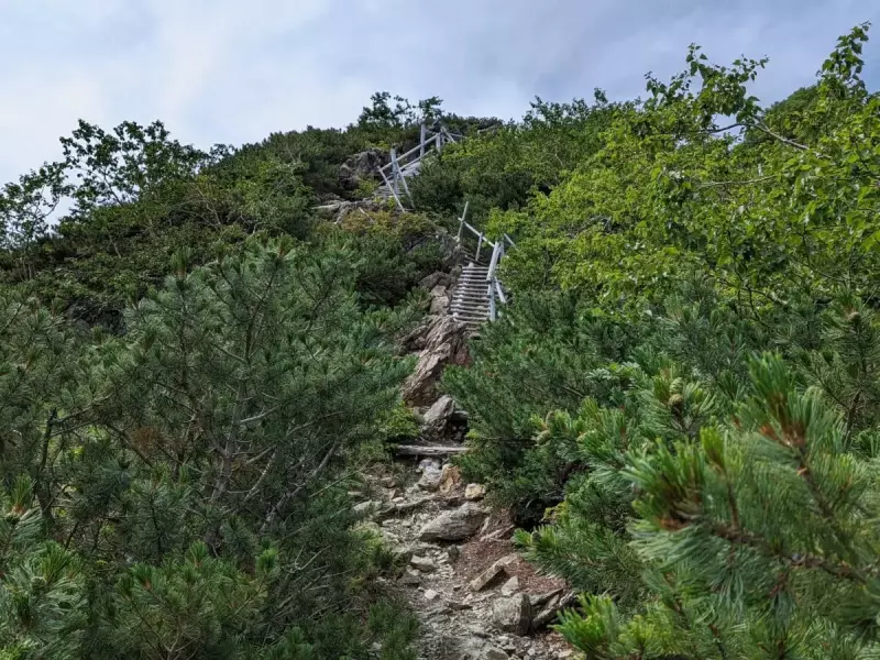 八本歯のコルからは木の梯子がありますが、高度感も少なく無理せず通過することができます。間ノ岳・北岳山荘方面の分岐点を右に折れ北岳頂上までは八本歯のコルから約1時間です。