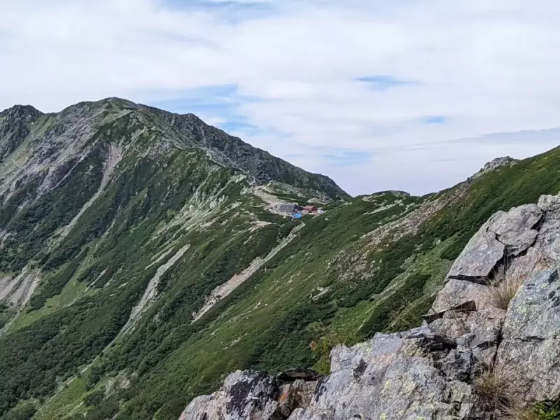北岳肩の小屋を後にし1日目の休憩で利用した白根御池小屋に向かいます。白根御池小屋に下山するときに利用する草すべりと呼ばれる登山道は、地面が砂利道で滑りやすいため、下山時は転倒に気をつけましょう。