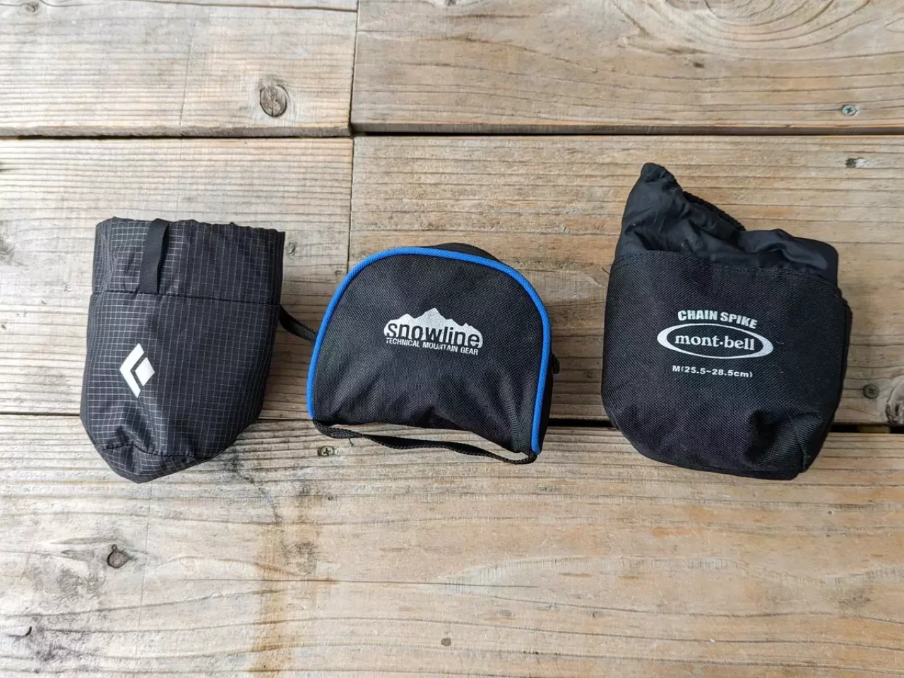 スノーラインにはアプローチシューズやトレイルランニングシューズ向けの軽量なチェーンスパイクと前の爪が先に2本前方に出ている爪の長さが特徴のチェーンスパイク、ベルクロストラップ付きのスタンダードタイプの3種類の展開です。