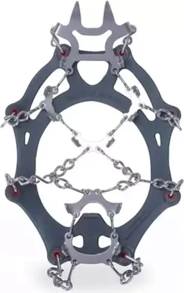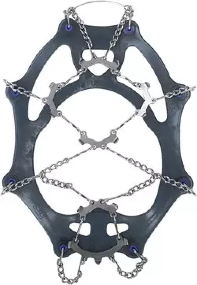 チェーンセントレイルは爪が非常に短く勾配の少ない登山道に適しており、13本爪のチェーンスパイクの中では2番目に軽いスペックです