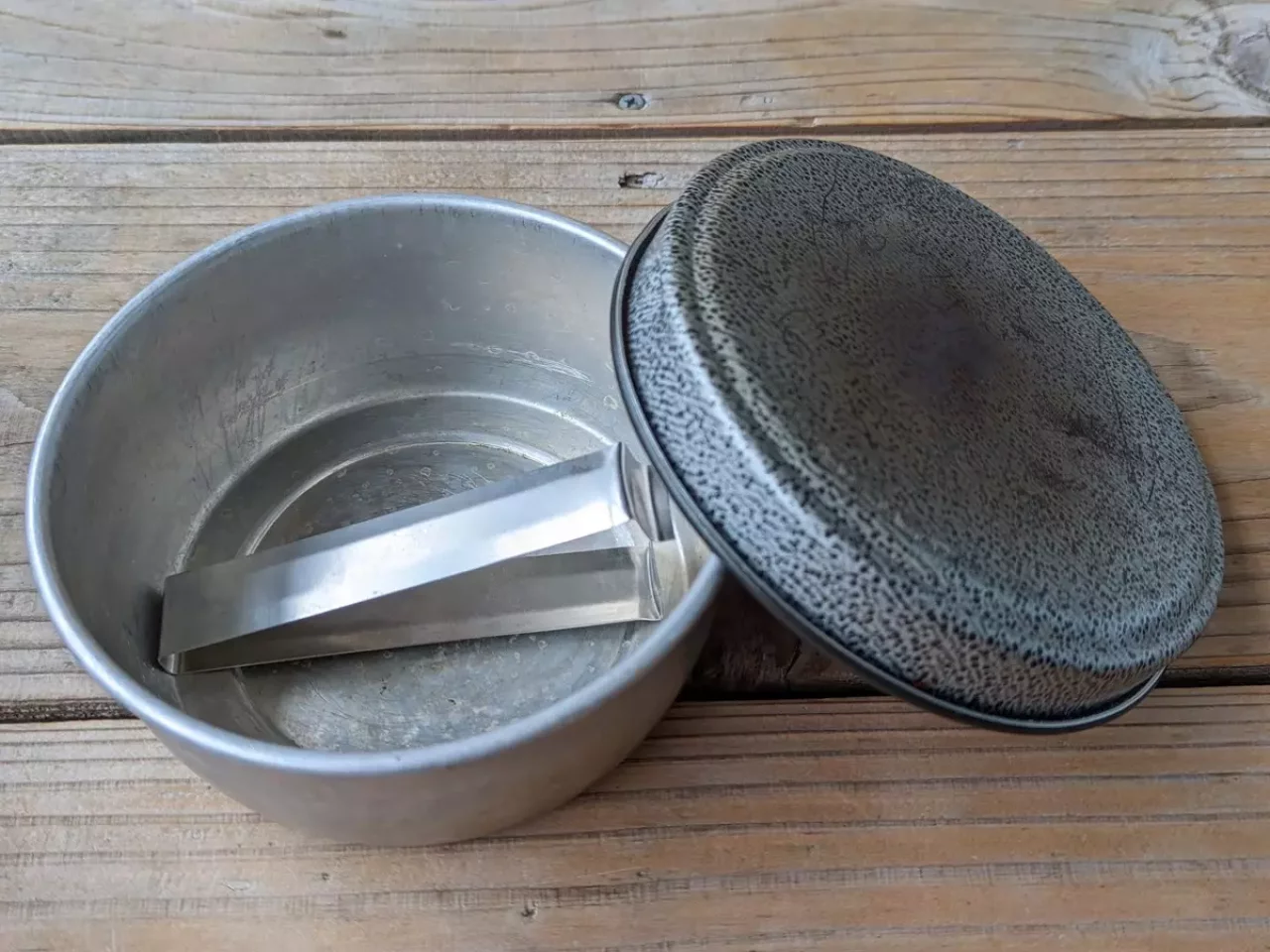 エスビットの固形燃料ミリタリーを使えば燃焼スタートから終了までの約13分、ほったらかしておけば炊飯が完了する利便性と、その独特な形状でムラなくお米を炊く事ができるクッカーです。