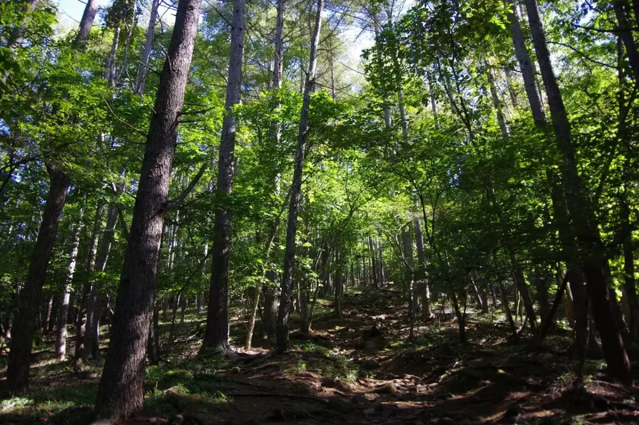 特に危険個所は無い穏やかな登山道です。広葉樹の森は秋の頃は美しく彩られます。