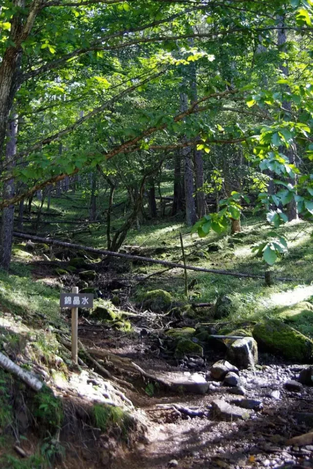 2つ目の水場「錦晶水」は 国師ヶ原の避難小屋、高原ヒュッテの手前10分弱の場所に。 ヒュッテ・幕営利用の場合はここで汲んでおくと良いでしょう。