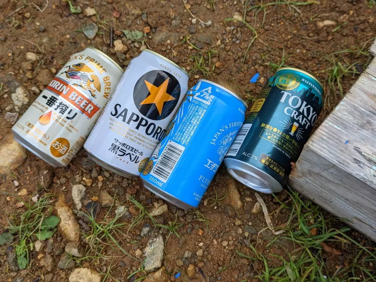 ビールは35缶を2〜3本、ウイスキーもしくはワインを持ち歩く事が多いです。