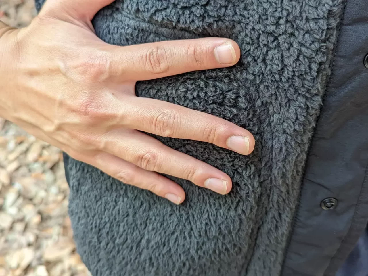 ポケットの中は起毛したメッシュ素材で覆われていて、体から出た熱は、このメッシュの素材を通して手を温める働きがあります。