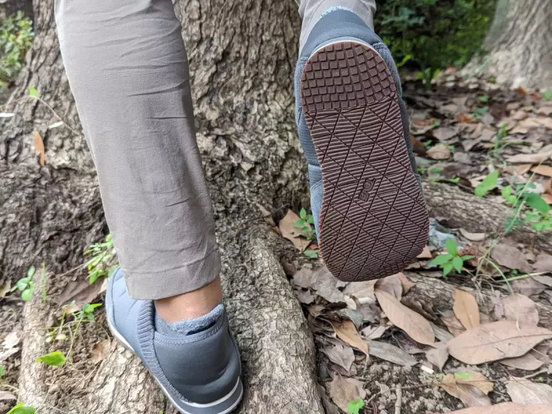 アウトソールはラバーで雨でも滑りづらく、ゴツゴツした地形でも無理なく歩くことができます。急斜面などでは踵が踏める仕様なので、靴の中で足がぶれやすいので、そのような場所を歩く時はスニーカーなどを履くことをおすすめします。また雪上での使用は滑りやすいので気をつける必要がありそうです。