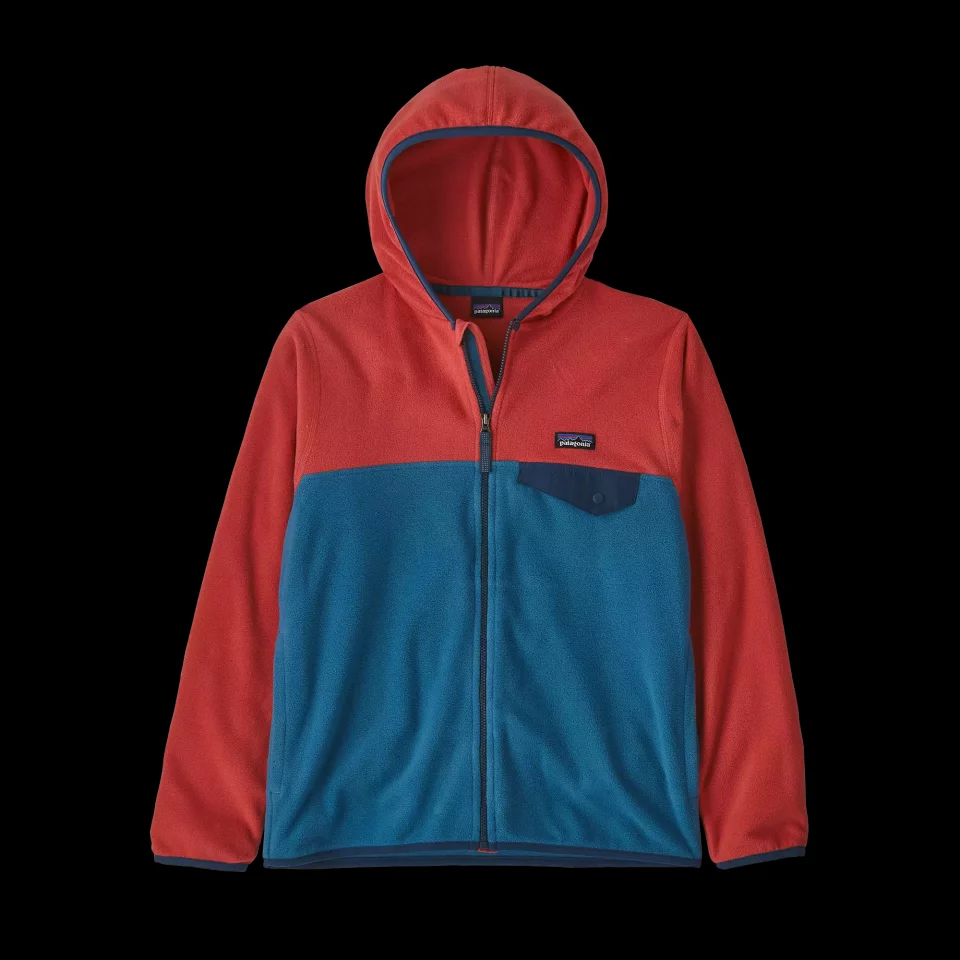 マイクロD・フリース素材をスナップTのスタイルで仕上げた、ソフトで快適なフルジップのフード付きジャケットです。鮮やかでキッズらしい配色が特徴です。