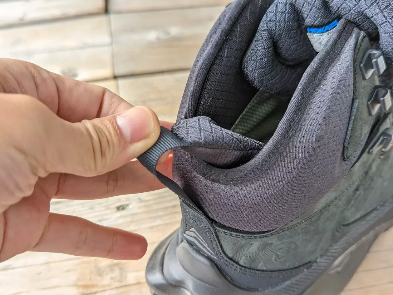 『KAHA 2 MID GTX』は踵からアキレス腱までを包み込む形状を採用しているので安心感が追加されたシューズに仕上がっています。(ローカットもミッドカットと同じ踵からアキレス腱までを包み込む形状を採用しています。)