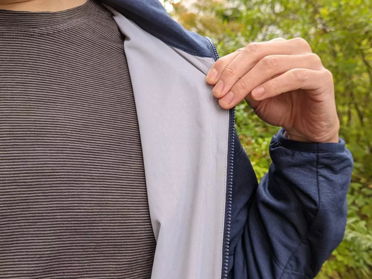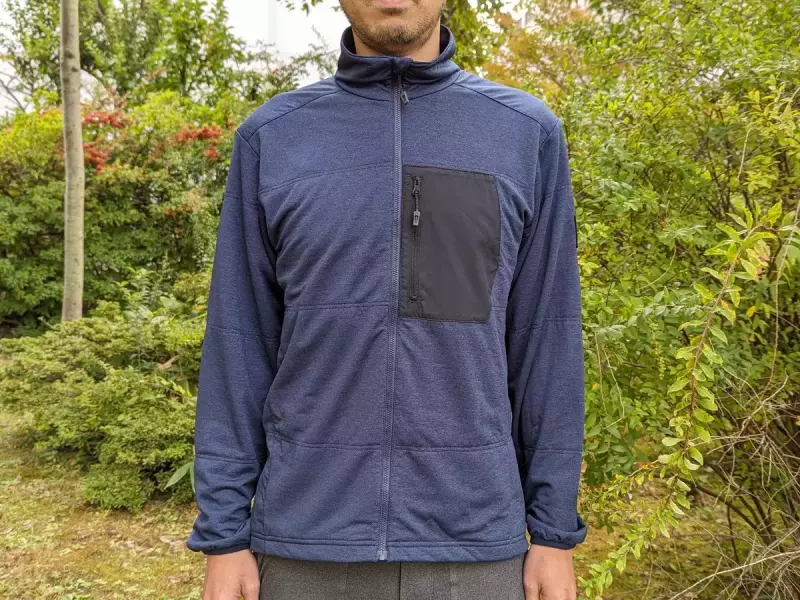 非常に軽量でスウェットのような肌触りで、冬の登山では登り始めの寒い時に着用して行動を開始し、暑くなったらジッパーを開けて体温調整が可能なジャケットです。