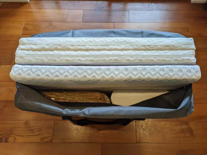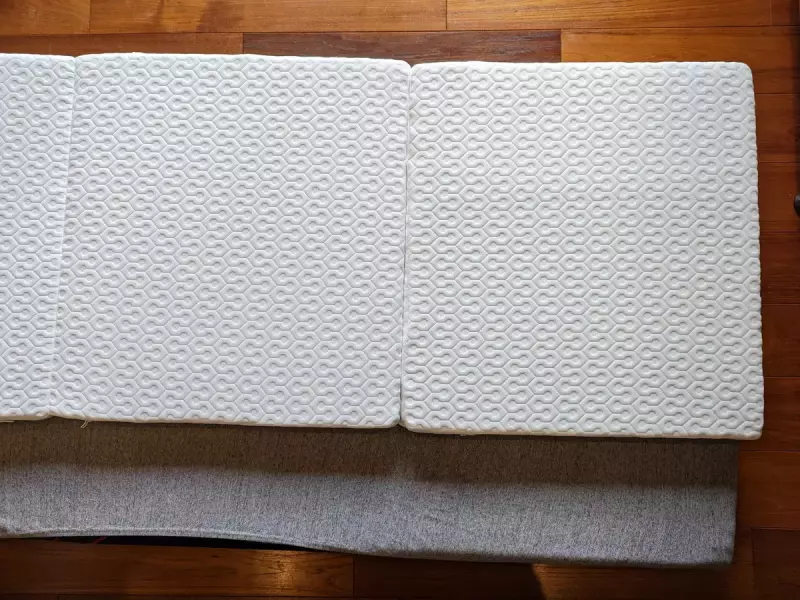 マットレスは、三つ折りにたたむことができて、収納時は700mm×650mm×180mmになり、重量は5360gです。