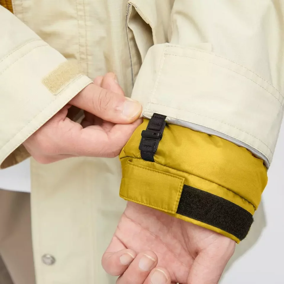 1992年にエクスペディション用に開発されたダウンジャケットの1つで、デビュー当初からほとんど変わらないデザインから、完成型に近いダウンジャケットとして毎年人気があるモデルです。当時のダウンジャケットのデザインを現代版にアップデートさせたデザインで、環境に配慮したリサイクルダウンを使用、サイズ感の調整、静電気の発生を抑える設計など特徴があります。製品名にジャケットとありますが、襟部分に収納できるフードを活用することで頭全体を冷気、風から守ることができます。