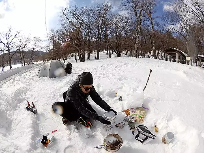 というメッセージが飛んできた。そうして僕らは食べたい山ごはん、飲みたいお酒、面白いテント、抜群な防寒グッズを備えて2月のある日、豊富な雪を携えた赤城山へ向かったのである。