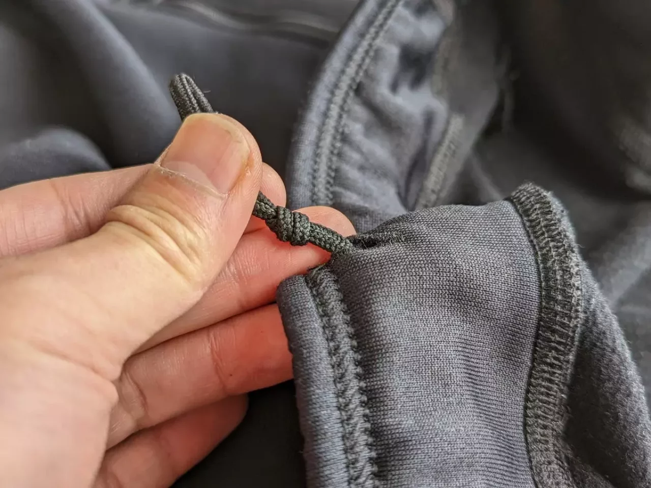 ウエストはドローコードを引っ張るだけでフィットする構造で使いやすく、裾はゴムによるフィットはないシンプルな構造です。