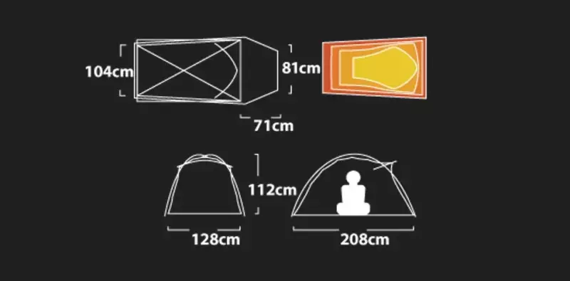 | テント内サイズ(縦×横×深さ) | 208×104×112㎝ |