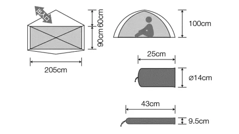 | テント内サイズ(縦×横×深さ) | 205×95×110 |
