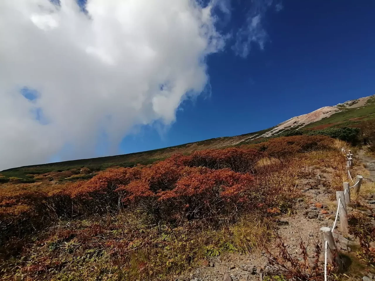 白山(山頂部)の紅葉の見頃は9月下旬〜10月上旬と言われており、9月29日の時点で山頂部は色付いていました。