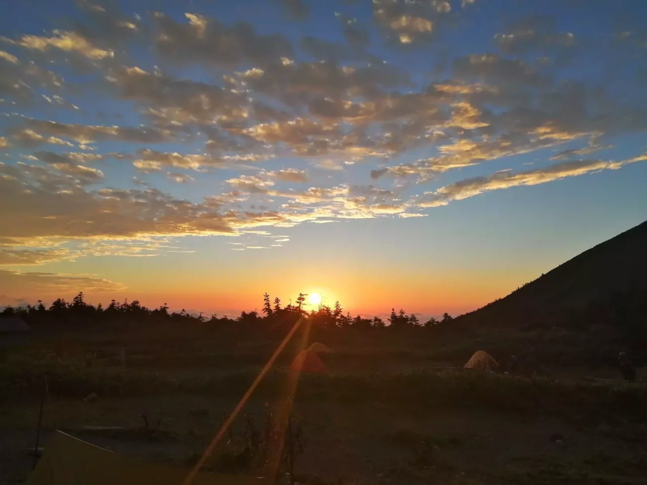 この日も夕暮れが美しく、お酒をゆっくり飲みながら幸福感の高い時間を過ごせました。テント場の入り具合は1割〜2割といったところ。