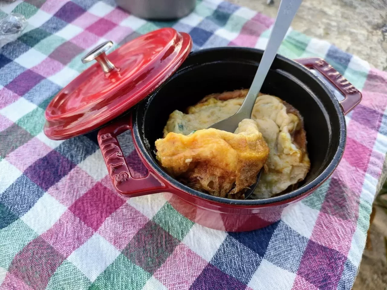 鋳物なので火から下ろしている間も調理が進むしまだホカホカでした。