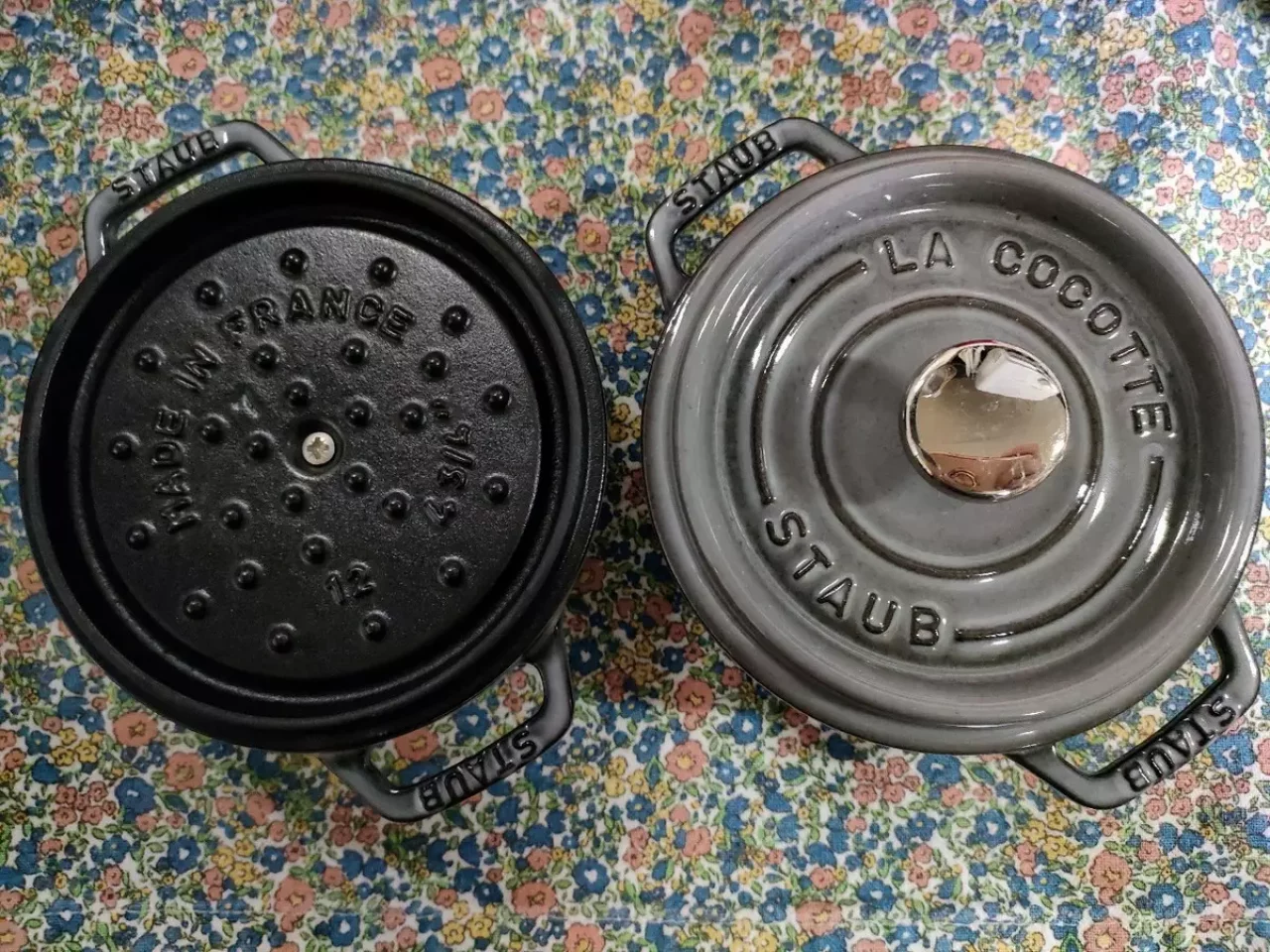 - Staub ピコココットラウンド12cm グレー:1,259g(実際量ってみての重量)
