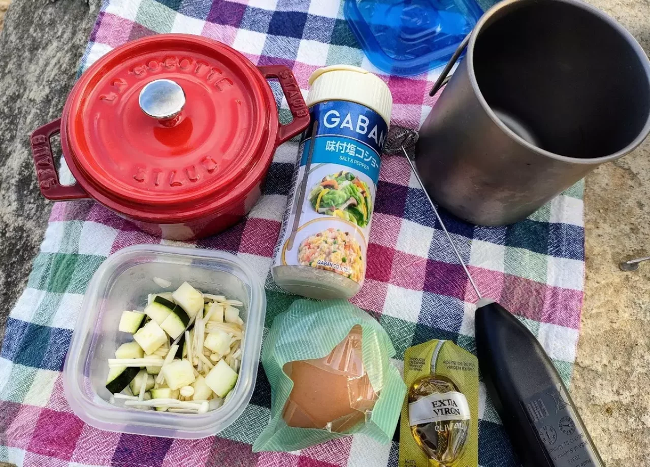 - えのき10グラムとズッキーニ20グラム(ざっくり切って持参)